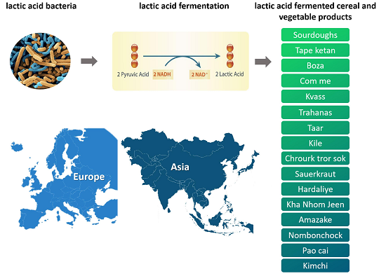 Keywords: lactic acid bacteria; fermented foods; cereals; vegetables; Europe; Asia; beverages; starter cultures; rice; wheat